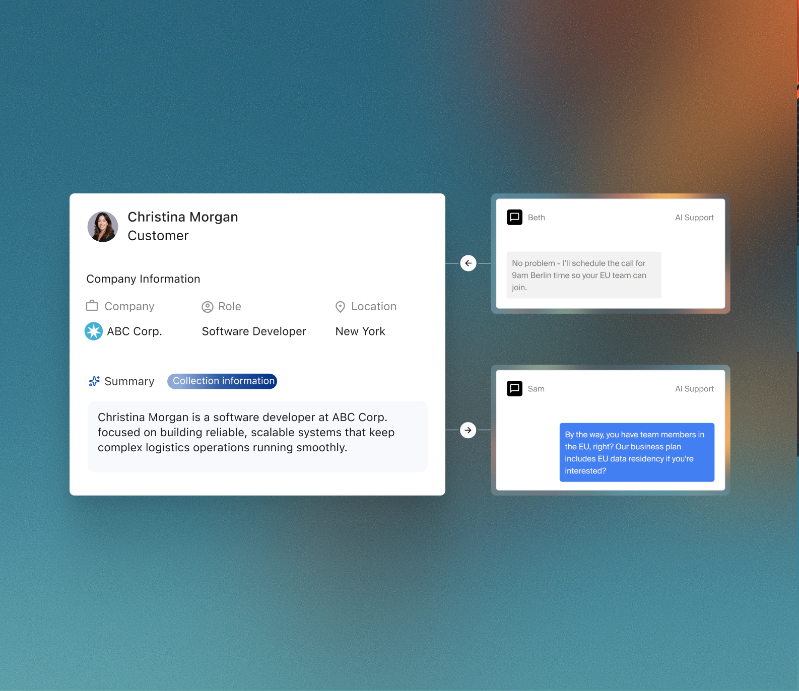Agents are essential sources of data - capturing previous conversations as memory, mapping real-time data mapped to relevant entities, and classifying outcomes that impact success.