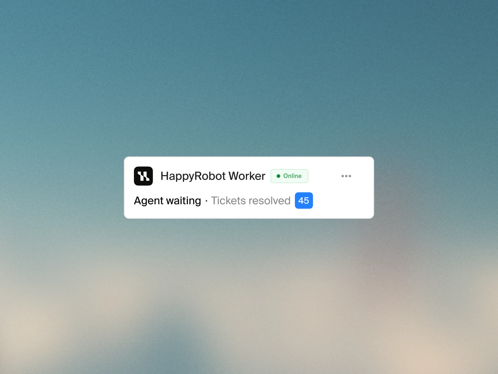 HappyRobot’s AI workers automate key support tasks across channels to deliver faster, 24/7 customer service with higher resolution rates and lower team workload.