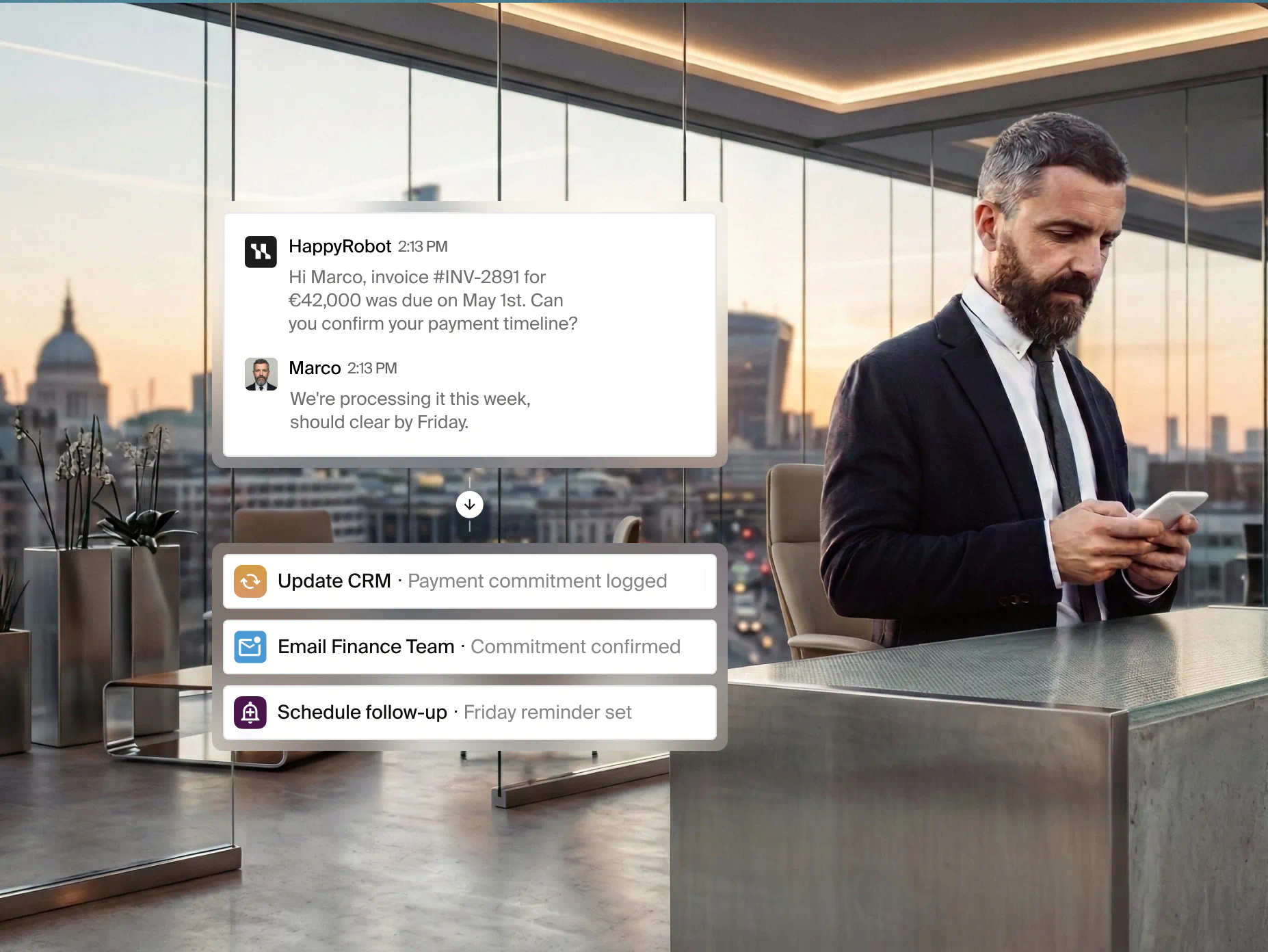 HappyRobot handles customer requests, automates compliance and back-office workflows, and drives revenue through renewals and collections.
